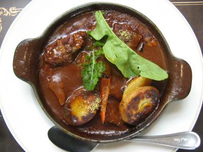 頂いたのは、「ハーフコースのシチューランチ 3,168円」で、内容はメインのビーフシチューに前菜3種盛りとコーヒーまたは紅茶がセットになったものに、焼き立てパン食べ放題に追加変更(+税込220円)しました。前菜3種盛りは鶏肉とじゃがいものテリーヌ・牛蒡のスープ・トマトマリネのカプレーゼと言った内容で、テリーヌはボリュームがあったし、牛蒡のスープも美味しかった。勿論、メインのビーフシチューはコクがあってとても美味しかった。パン食べ放題も焼き立てのものが次々とタイミングよくサーブされお腹一杯になりました。- 旅行時期