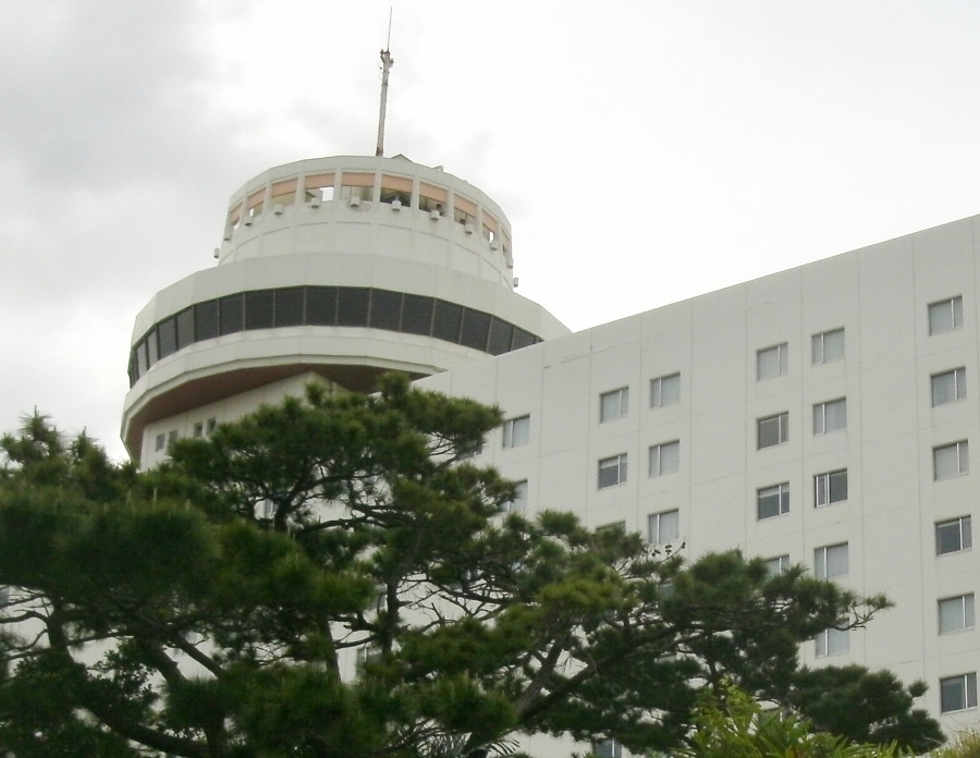 那覇市内から首里方面に行く県道沿いの小高い丘にある老舗のホテルです。