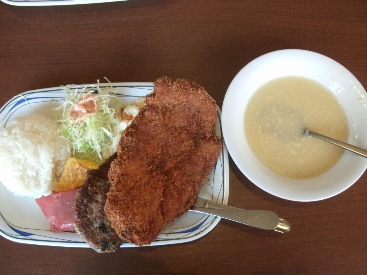 “Aランチ800円”を頂きました。大きな豚カツにハンバーグ、ポーク・玉子とスープが付いたもの。スープとハンバーグは微妙なものでしたが、豚カツはそこそこ美味かった。次は、ハンバーグの無いBランチかCランチにしょう・・・。- 旅行時期