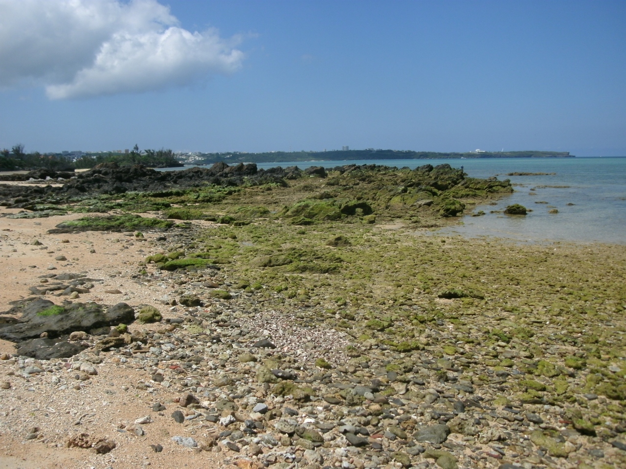 岩場だらけの海岸で、公園や東屋などもありますが、周辺は雑草などが茂っていて、海水浴にはあまり向かないようなところです。