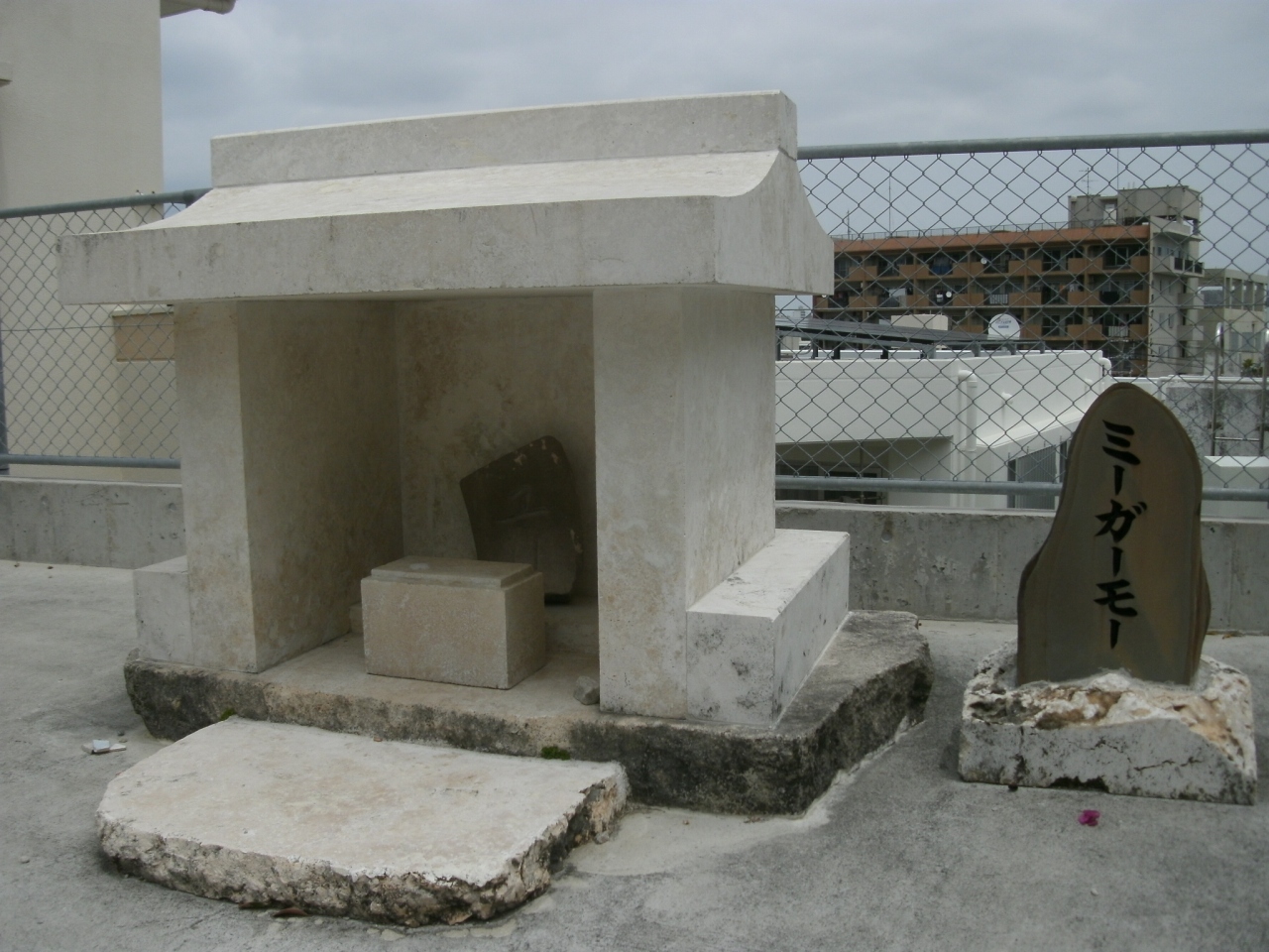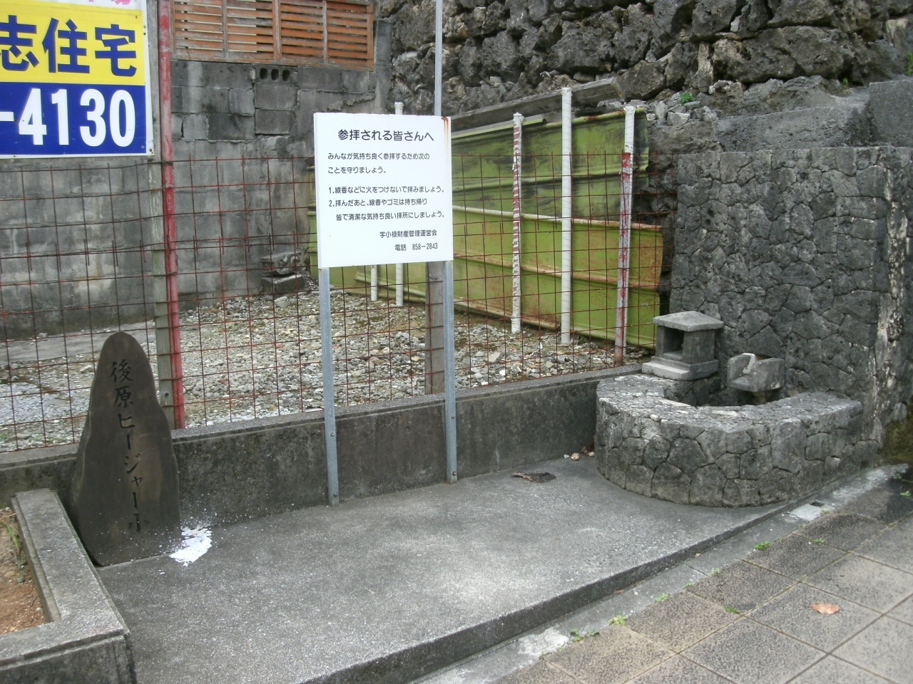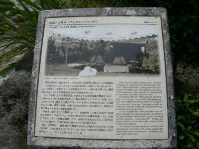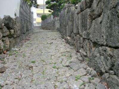 ゆいレールが走る大通りから路地へはいると住宅街になり、路地には少しですが石畳道があったり、ミーガーモー(小録村の遊び場)や昔の井戸、ノロの屋敷(小禄ノロ殿内)、ハワイ会館など戦前の集落風景にある遺構や信仰場所が残されています。ただし、“古道”そのものの散策順路などが明示された表示板が無いためかなり判りにくかったです。