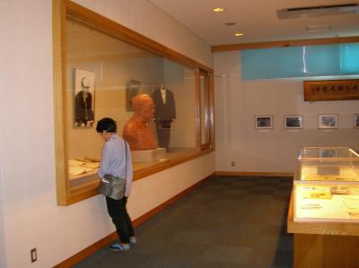 1階には展示室とギャラリーがあり、自筆の原稿と万年筆、早稲田大学総長時のガウンと帽子、勲一等旭日大綬章勲記、著書の一部、胸像(石膏原型)、赤瓦のミニチュアの家などが展示されています。