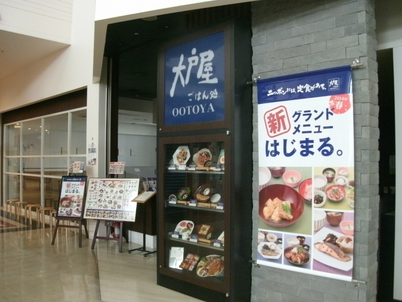 那覇から車で20分ぐらい、豊見城市豊崎にあるショッピングモールTOMITON内にあるお店です。店舗の一角にフードコートエリアがあり中央には子供が遊べる場所が設けてあります。店頭には料理のサンブルメニューがずらりと並べてあって判りやすい。