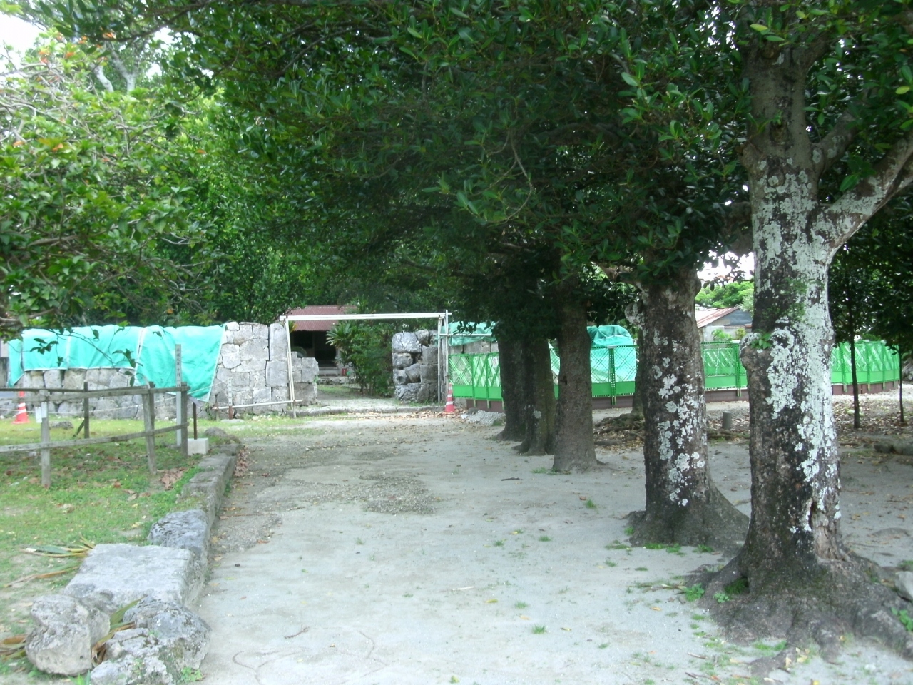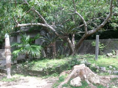 石囲いの中心には神聖とされる大木(アカギ)があり、その下に三個の石が立てられるという、沖縄独特の御嶽の形式です。