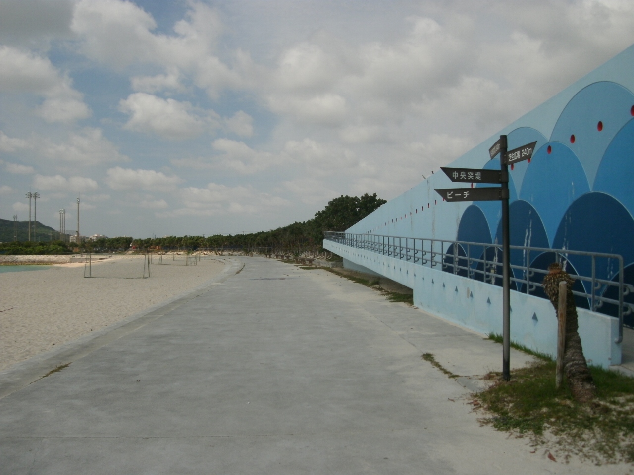 「西原マリンパーク」は、沖縄自動車道の西原JCTから車(一般道)で約20分、沖縄本島南部の東海岸沿いに位置し、中城湾(太平洋側)に面している大型の複合型海浜公園です。