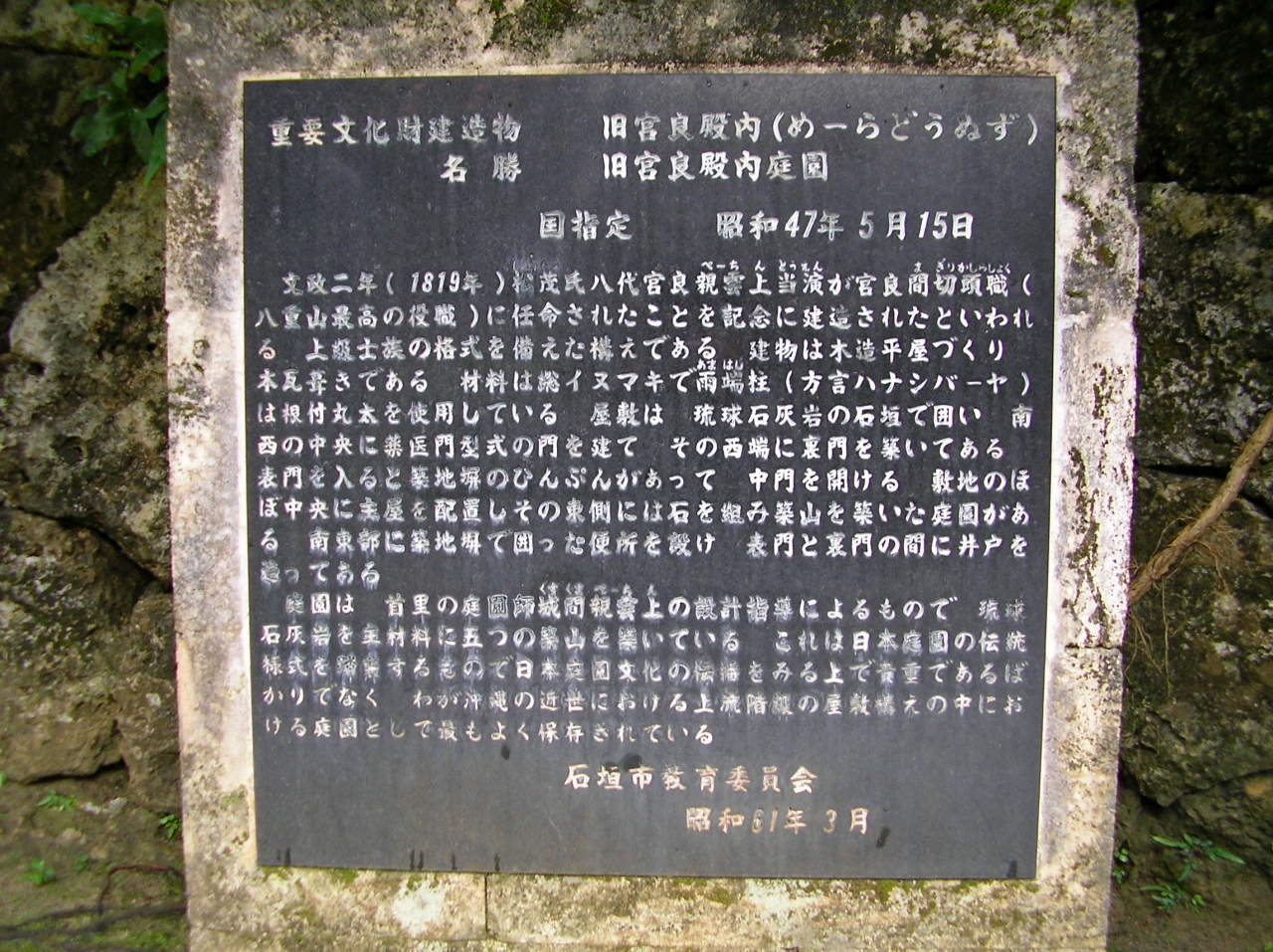 「南風原かすり」という美しい織物で知られている南風原町の“琉球かすり会館”の周辺には、織物の工房や糸張り作業場などが集まっています。古い時代の情緒が残るこのエリアは「かすりロード」と呼ばれ、「織物のまち・南風原町」を体験できる散策ルートとなっています。散策ルートには、石畳に南風原町の伝統産業である「琉球絣」の模様がほどこされているところがあったり、イジュンガー公園内には、草木染めに使われる樹木の説明が書かれた石柱が建っていたり特徴的なところもありますが、途中でルートがわかりにくくなっている部分もありました。全長で2kmほどあるらしいですが、もう少しわかりやすいルート表示があればよいと思いました。