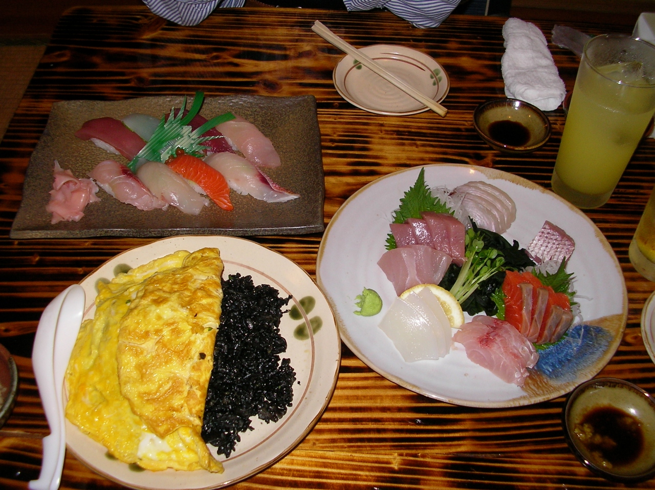 家内と二人で、刺身盛り合わせ、天麩羅盛り合わせ、近海魚にぎり盛り合わせ、イカ墨チャーハン、海ぶどうなどを頂きましたが、どの魚介も新鮮でボリュームもあって大変美味しかった。石垣での飲食はここで決まり、オススメのお店ですが、人気店だけあって満員になっていることも多いので注意が必要です。- 旅行時期