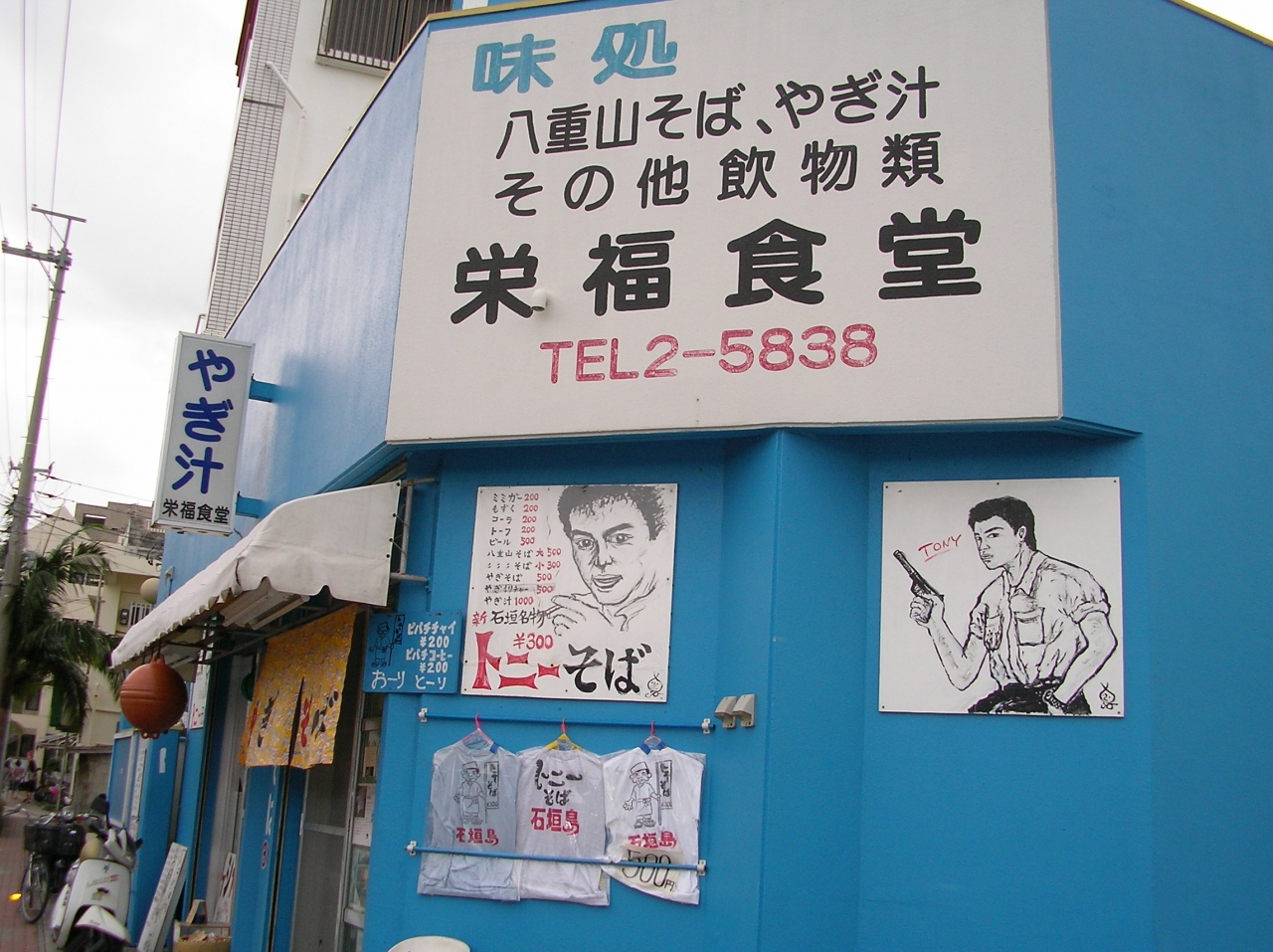 浜比嘉大橋の袂近くにあるホテルです。周辺には食事処が見当たらず、昼食を取るために一階のレストランに立ち寄りました。ちよっと年季の入ったレストランという感じの店内の壁には有名人の古い写真がたくさん飾ってありました。沖縄そば550円を注文。沖縄そばは大きめのソーキが2個とかまぼこがのったもので、鰹出汁がしっかり効いていて美味しかったです。