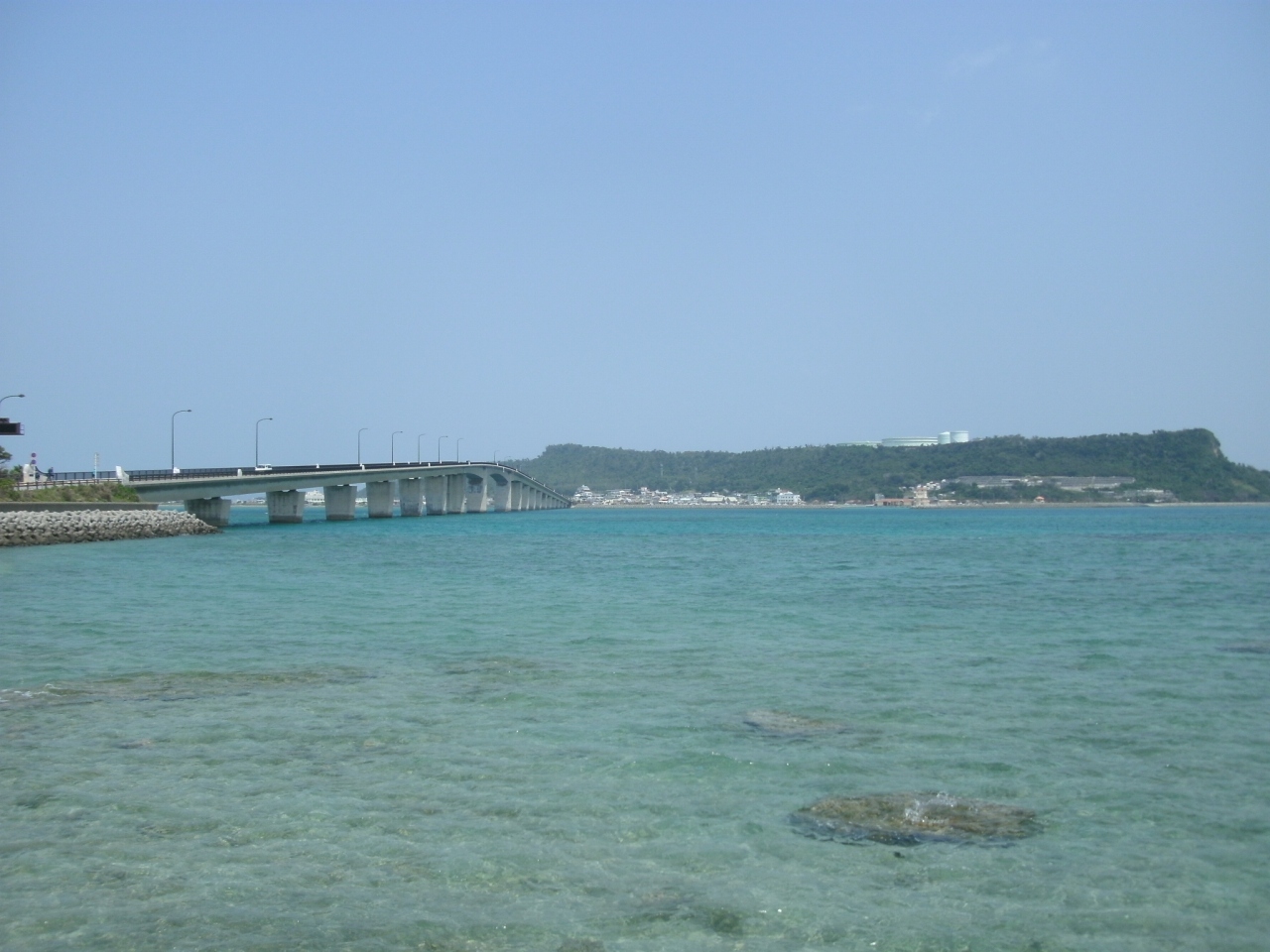 勝連半島から平安座島を結ぶ4.7kmの道路で、浜比嘉、平安座島、宮城島、伊計島へ行くときによく利用します。海を横切る堤防(土手道)によって構成されており両サイドには海が広がっていて、晴れた日は爽快なドライブができますが、ここを通ると『何故、海中道路だろう、海上道路でしょうが・・・』と突っ込みたくなります。