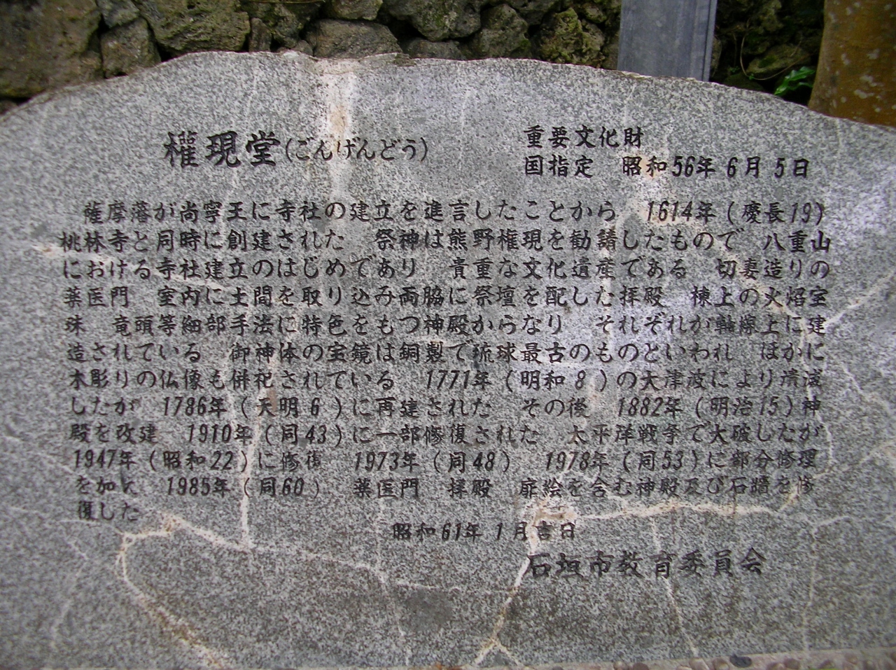 『アイナマとはかわいい花嫁のことです。昔、川平村の美しい娘が平久保村に嫁にいくことになりました。平久保村と川平村は遠く離れており、行き来するにはジャングルのけもの道や干潮時に海沿いに歩かねばならず二日がかりでした。親の勧めで仕方なく承諾したものの、娘にとっては気の進まぬ結婚でした。嫁入りのため平久保村へ向かう途中、花嫁は用足しにといって茂みのなかへ姿をかくしました。なかなか戻らないので、お供の者があたりを探しましたが、花嫁の姿はなく、昼なお暗い山奥には花嫁に似た冷たい石がひっそりと立っているばかりでした。いつしか人びとはこの石のことをアイナマ石と呼ぶようになりました。・・・・』- 旅行時期