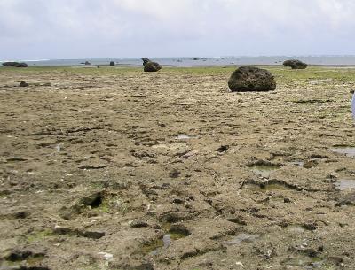 石垣島の北部にある、石化伝説のひとつです。「アイナマ」とは八重山方言で「かわいい花嫁」という意味だそうで、女の人に見えるかどうか微妙ですが、石が立っていて、解説版には次のように表示されていました。