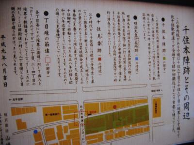 北千住駅から歩いて10分あまり、千住新橋の両側に広がる荒川河川敷にある公園です。広々とした緑豊な河川敷公園で、サッカー場や野球場があり、花壇や遊歩道、ワンドなども整備されていてジョギングやサイクリング、川辺の生物観察などの散歩に最適のところです。都会のオアシスの様な環境は素晴らしいと思います。