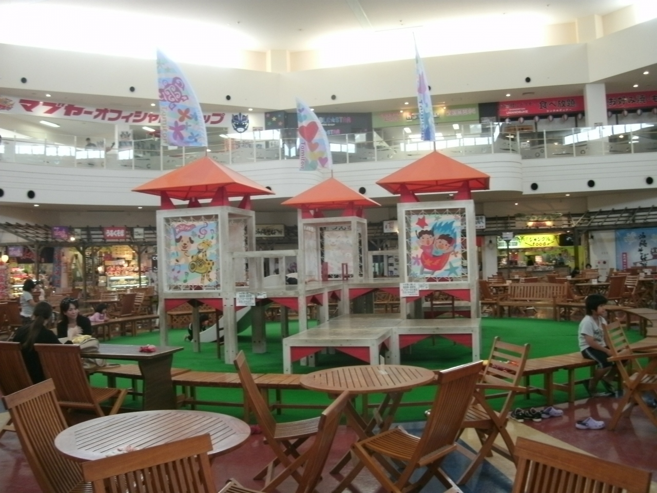那覇から車で20分ぐらい、豊見城市豊崎にあるショッピングモールです。フードコートやダイソー、沖縄三越豊崎マイキッチン、写真館などさまざまな店舗が集まっています。1階のフードコートにはキッズ憩いの広場があって、遊具が設置されており子供がたくさん遊んでいて、落ち着いて食事できるようなところではありませんでした。道路一つ隔てて、“沖縄アウトレットモールあしびなー”もあり便利なところなのですが、どちらかと言えば付近住民の生活の拠点となるようなところで、あえて観光客が行くようなところではないかも知れません。