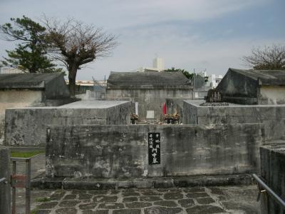 糸満ロータリーから歩いて3分ほどのところにある、沖縄県内最大の巨大な門中墓です。「門中(ムンチュウ)」「腹」とは、父系の血縁集団を表す言葉で、このお墓には約5,500人の先祖が祀られており、一族団結の象徴となっているそうです。破風形式の家型の立派な墓が並ぶ景色は、お墓が持つ暗さを全く感じることの無いスケールの大きななものでした。清明祭の時には、たいへん賑やかになるのでしょうね。