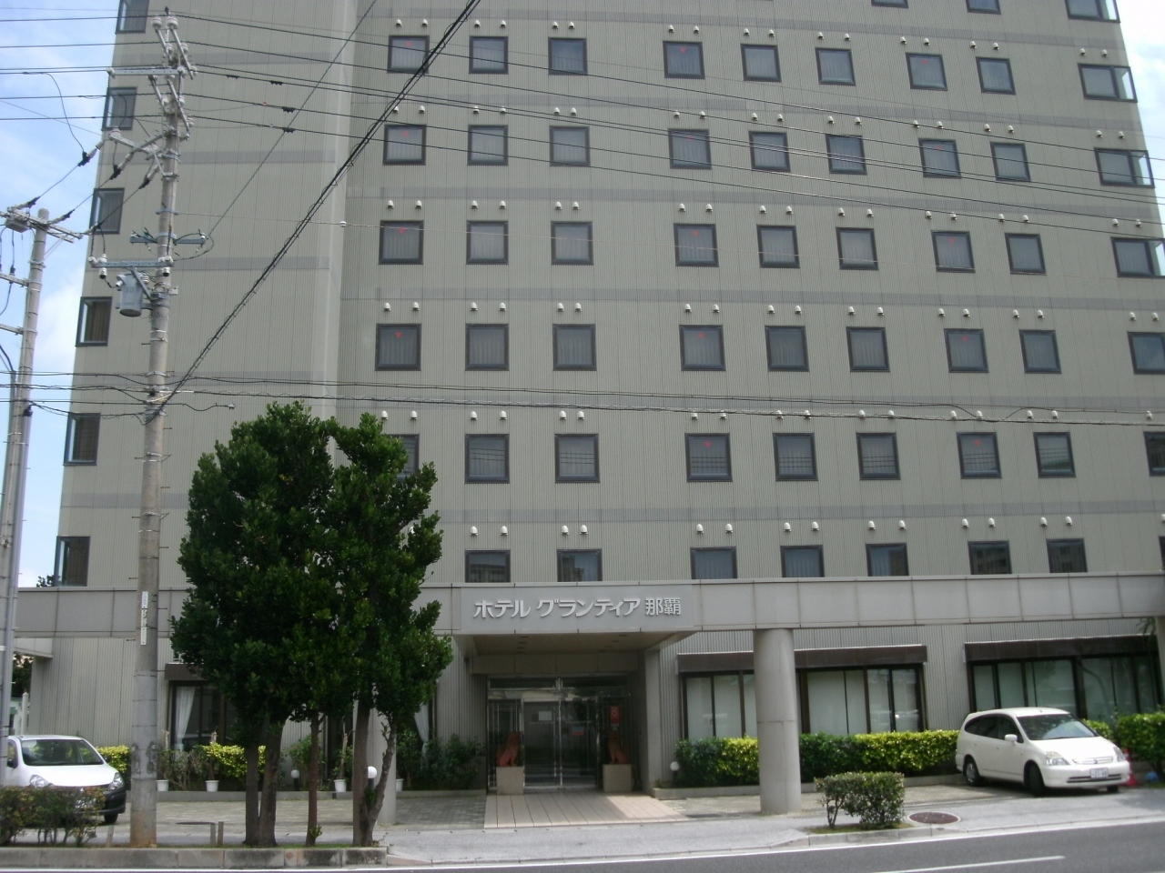 ゆいレールの旭橋駅から歩いて10分あまり、広い道に面して立つホテルで周辺には飲食店も少ないしコンビニもありませんが、夜遅くまでやっているスーパーが2軒あります。