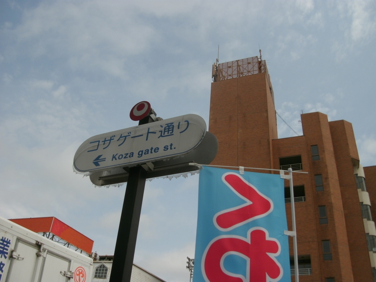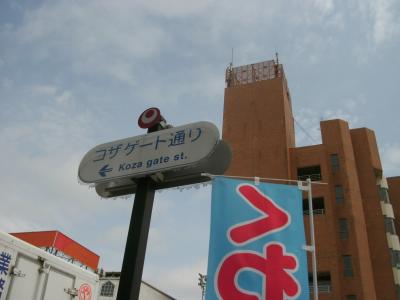 沖縄市の中心街から嘉手納基地へと続く通りが“空港通り”ですが、通称“ゲート通り”と呼ばれています。通りには“コザゲート通り”の標識があがっていました。特別な施設がある訳でもないなんてこと無い広い通りですが、通りに面した飲食店や洋服店の看板には横文字が書かれているものが多くて“基地の町”という雰囲気がある通りです。