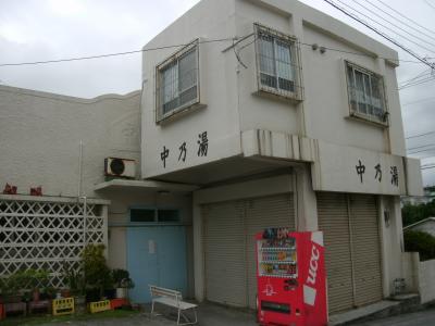 コザ十字路から国道330号線を西に500mほど行って、少し南に入った住宅街にあります。それほど大きくない普通の建物ですが、表面に三箇所“中乃湯”と大きく表示されているので判りました。沖縄唯一の源泉かけ流し温泉の銭湯という話なので訪れたのですが、たまたま、訪れたのが木曜日で定休日だったため入れませんでした。残念!また、来ます。 定休日:木曜・日曜 営業時間:15:00〜21:30 料金:大人(12歳以上)350円