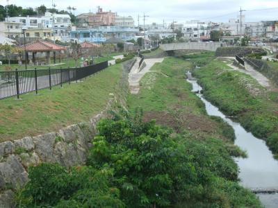 コザ十字路の西、国道330号線沿いにあります。川沿いに遊歩道や東屋が設けられた公園で、水辺に下りていくことも出来ます。比較的小規模な綺麗な公園ですが、これと言った施設も無く、わざわざ観光に行く様なところではありません。近くに住んでおられる方が、散歩に利用されるような公園です。