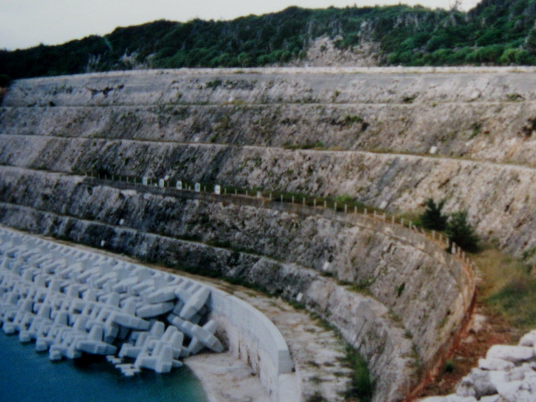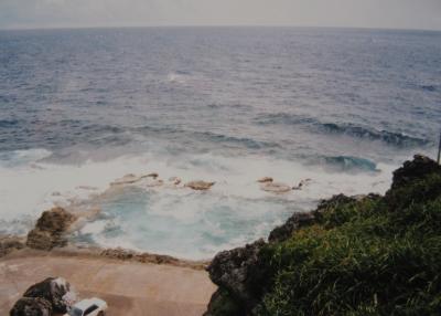 南大東島は周囲が断崖絶壁で砂浜が無く、しかも急激に深くなっていることから、子供達が安心して泳げる様にとして、海辺の岩礁を削って作られたプールです。