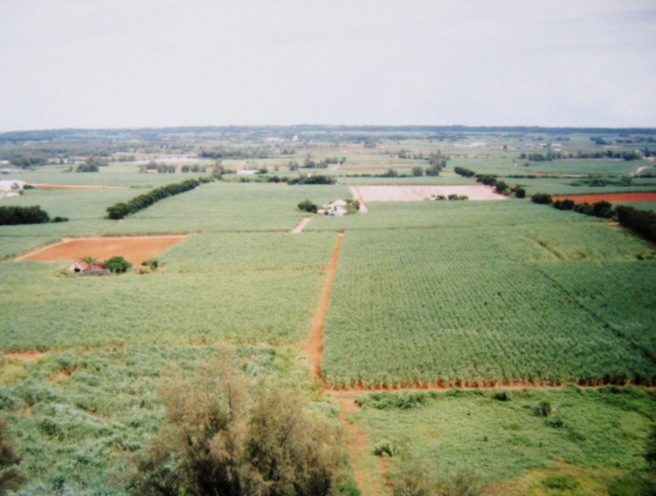 「日の丸山展望台」は大東島の南側にあります。昭和の初めに青年団がこの山を集団活動の拠点として、日の丸の旗を掲揚したことから、日の丸山と呼ばれるようになったそうです。標高57mの丘の上に立つ何の変哲もないコンクリートの展望台で島を一望することが出来ますが、一面に広がるサトウキビ畑が印象的なだけで、それほど絶景を見渡せるというところではありません。ただ、南大東島には、高い山や建物が無いため、島全体を見渡すことができないので、ここは、島を広く展望できる貴重なスポットになっています。