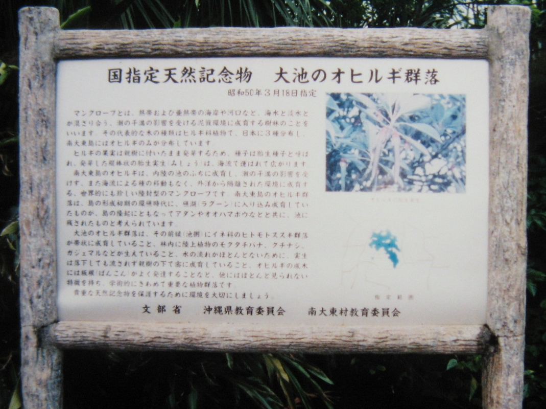 島の周りは断崖絶壁でビーチが無く、港も無いのでフェリーから、人も貨物のようにクレーンで吊られて上陸します。島内はサトウキビ畑が多く、時間がゆっくりと流れ、すべてノンビリとした感じです。“案内人”の方の話では、カエルさえ暑さを忘れて、足を上げる前に干からびてしまう(勿論、冗談でしょうが、真剣に話してくださった))ということで、道路上には足を上げたまま、かたまったような大きなカエルが沢山死んでいました。海軍棒プールや大池のオヒルギ群落、日の丸山展望台などの見所がありますが、中でも東洋一の鍾乳洞と言われる“星野洞”の美しさはには眼を見張るものがありました。南大東島を訪れたら、是非、“星野洞”を訪ねてみてください。- 旅行時期