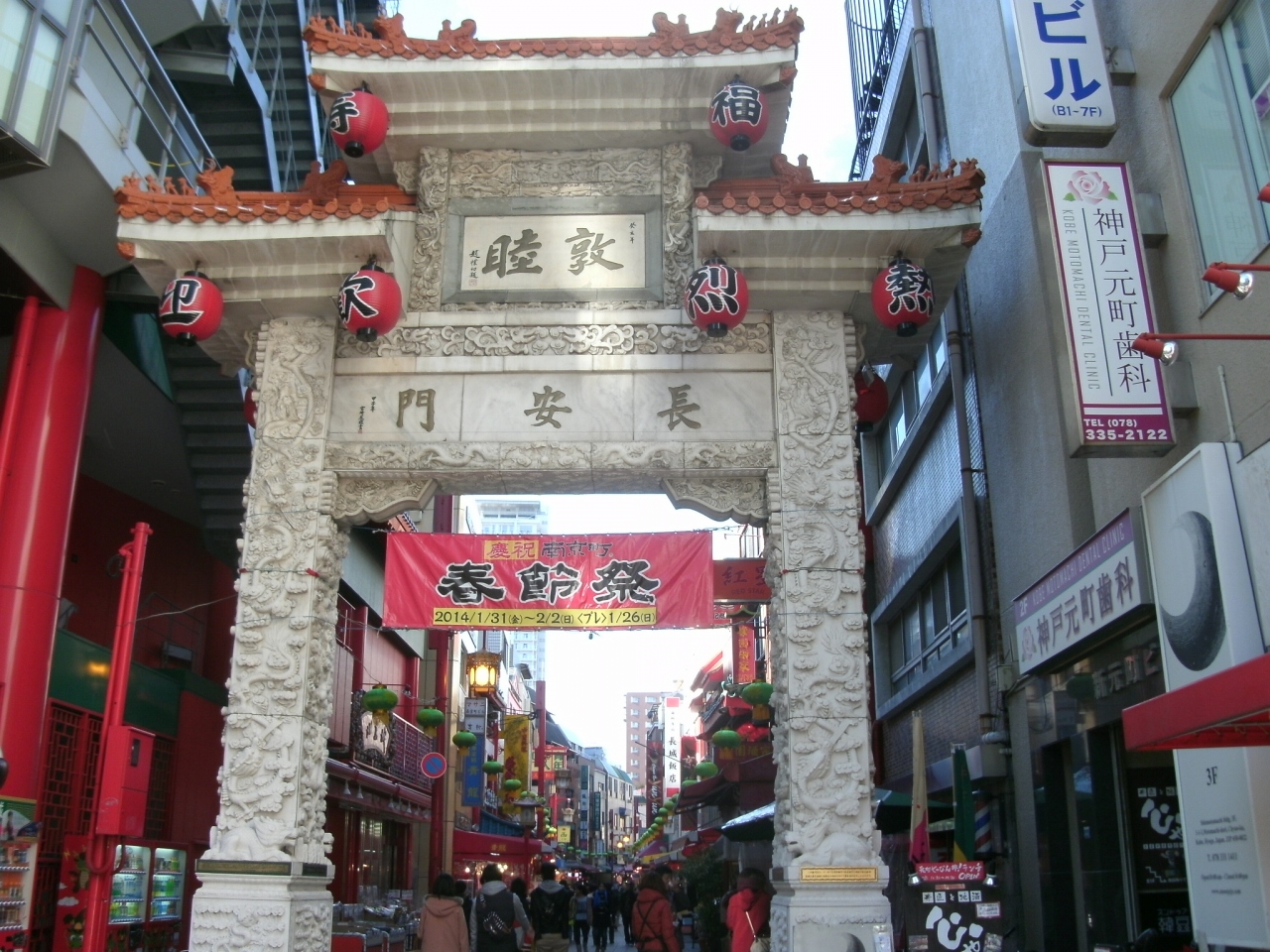 JR元町駅から南に5分足らず神戸の中華街、南京町のまん中辺りにある南京町広場の傍にあります。