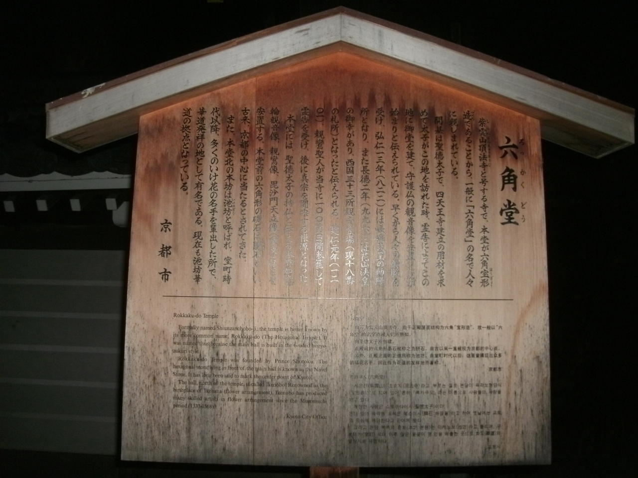 天台宗系単立のお寺さんで、正式には紫雲山 頂法寺と言うそうで、本堂が平面六角形であることから、一般には「六角堂」の通称で知られています。