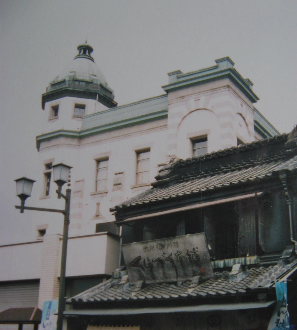 川越の蔵造りの街並みのメインストリートにひときわ目立つルネサンス様式の建物です。大正7年に川越の地場銀行である八十五銀行の本店として建てられたもので、現在は埼玉りそな銀行川越支店として使われています。蔵造り通りから見るドームの乗った洋館は蔵のお店と不思議にマッチして面白い風景です。