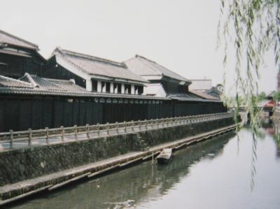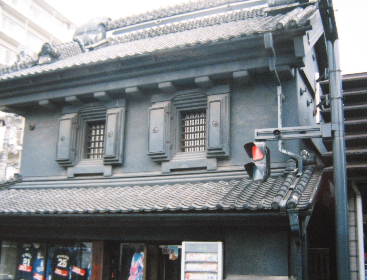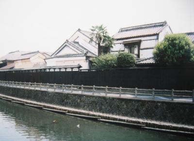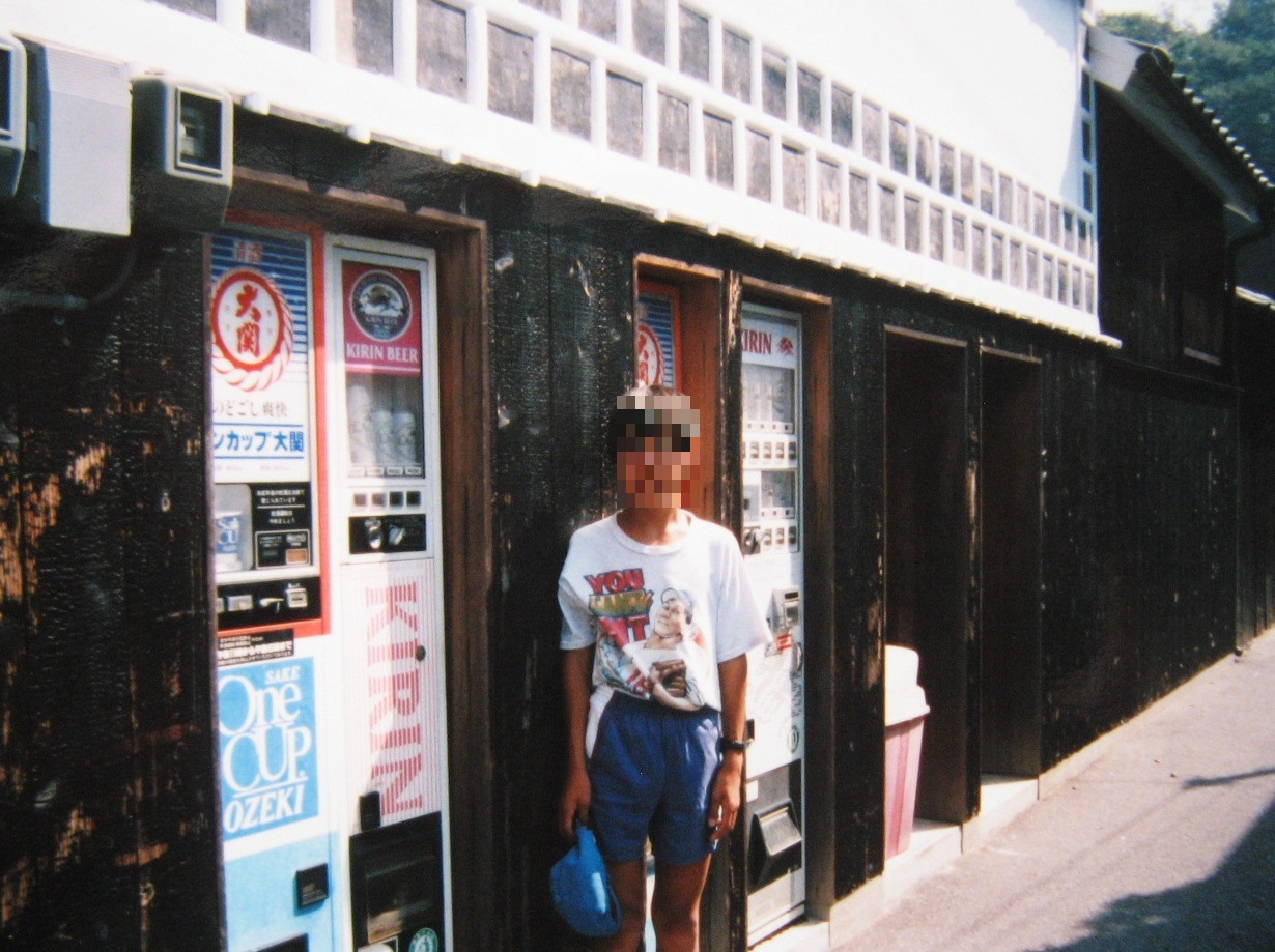 祇園神社の参道付近から東の田之浦に続く旧道沿いは、本瓦葺きの屋根や土蔵など古い町並みが残る県の町並み保存地区となっています。なまこ壁、黒塀の壁に埋め込むように自動販売機を据付て景観に配慮している風景が見られました。- 旅行時期