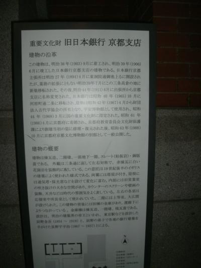 本館と別館があり、別館は明治39年に竣工され日本銀行京都支店として1965年まで使用されていた煉瓦造りのレトロな建物で、国の重要文化財に指定されており、三条通を中心とする“界わい景観整備地区”における景観重要建築物のひとつとして保存公開(入場無料)されています。中にはコーヒーショップや和小物の販売所、展示スペースがあります。