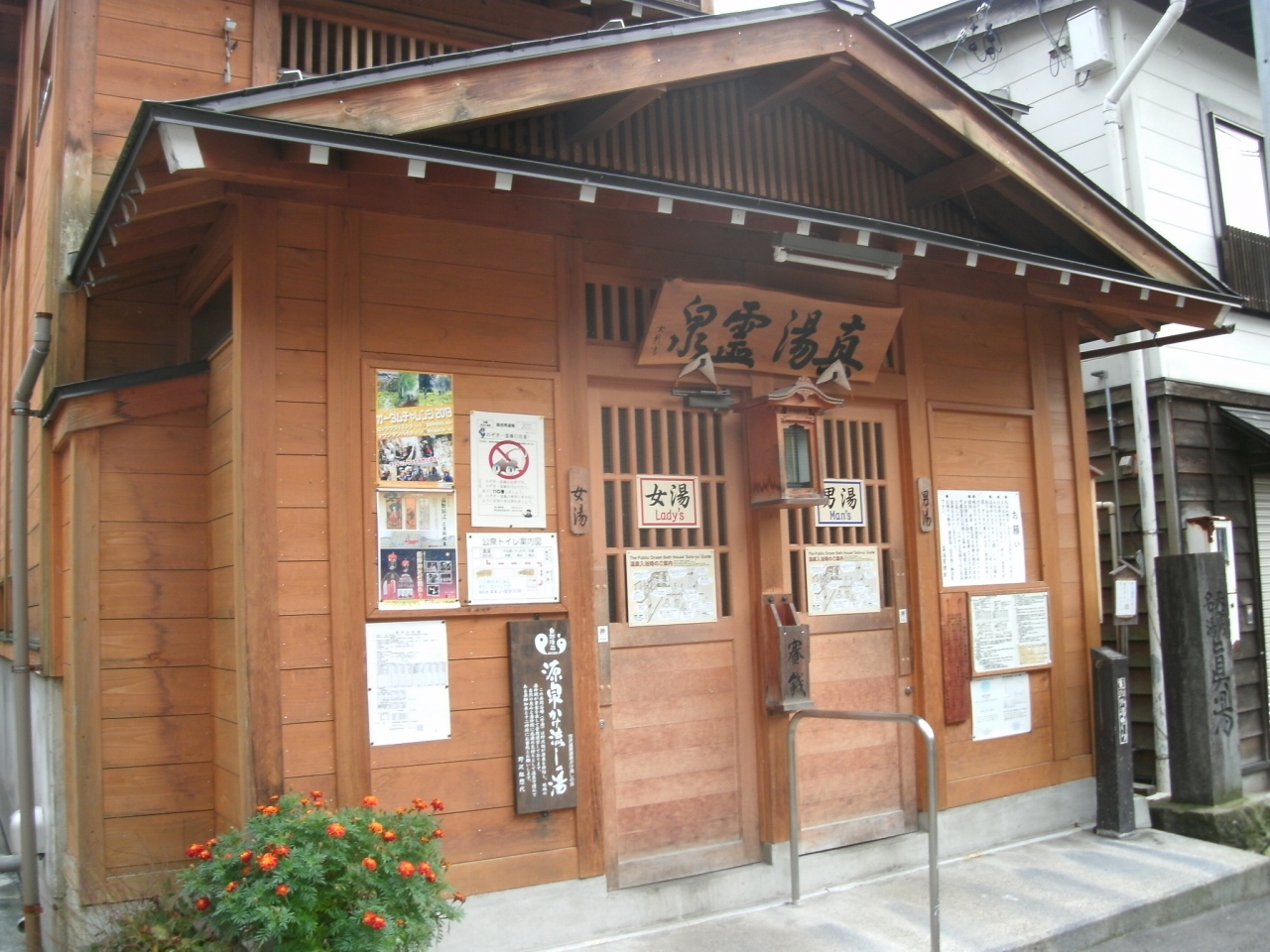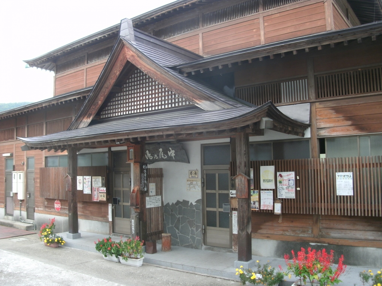 野沢温泉街のホボ真ん中にあります。坂道に建つ、1階が鉄筋コンクリート造りの様で地元の人が使う洗濯場になっています。2階は木造の風格ある“大湯”の様な外観です。湯船は一つで広め、少し白っぽいお湯はかすかに硫黄のにおいがしていました。