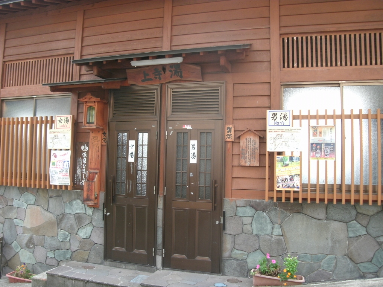 野沢温泉街の西のはずれの方に「野沢温泉 上寺湯」があります。こじんまりした建物で、中に入ると、浴室は野沢温泉外湯の標準スタイルである脱衣所とお風呂一体型タイプ。熱くてそのまま入ることはできず、薄めてほんの少しだけ入ったが、お湯は無色透明、硫黄臭はごく僅かでさらっとした肌触りのいいお湯でした。