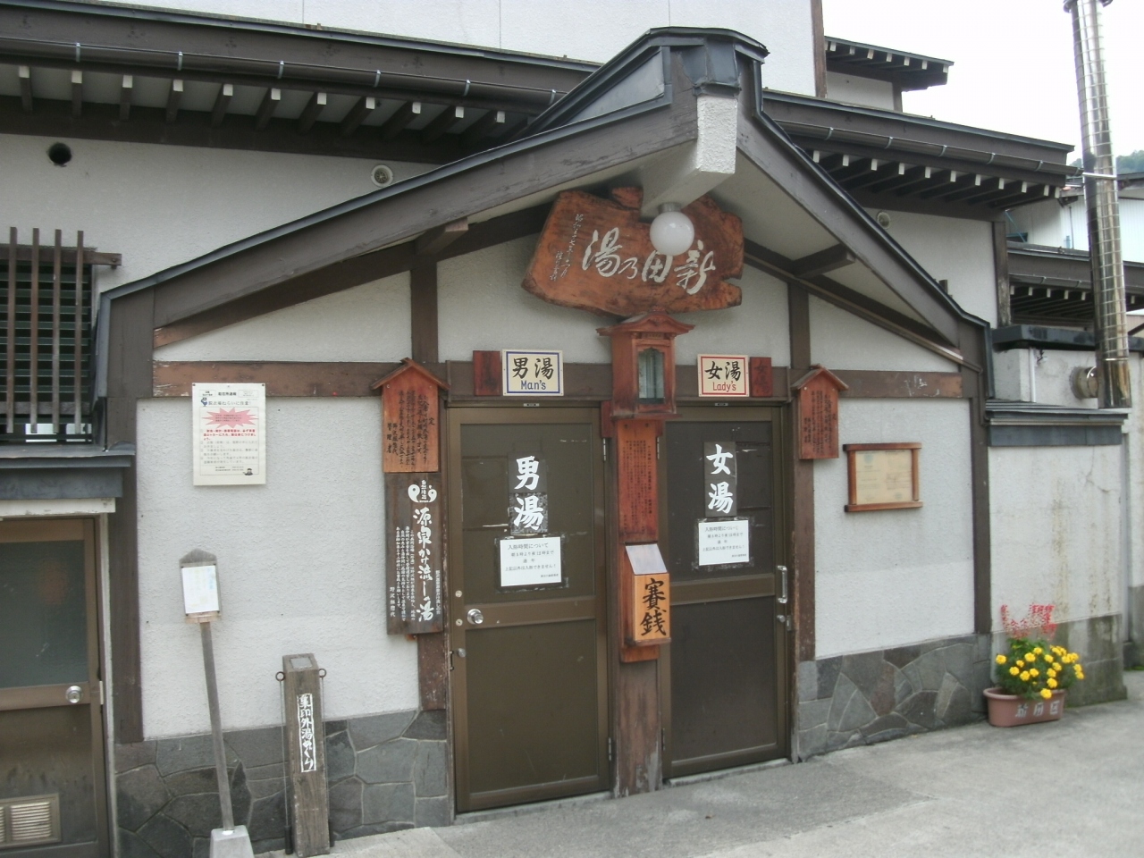 野沢温泉街の北のはずれの方にあります。外観は比較的新しい建物で綺麗です。浴室に入ると、湯船は一つで乳白色の湯に混じって黒い湯の花が漂っています。湯の花は白いものだと思っていたので、最初はゴミの様なものかと思いました。熱くて難儀しましたが、水道を出して薄めるのはもったいないので、ほんの少しだけお湯に当たりました。入湯料は無料ですが、入り口に賽銭箱がありますので、外湯を管理していくことも大変でしょうから、お賽銭を入れて感謝の気持ちを表しましょう。