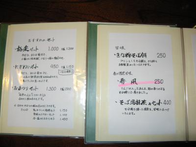 古い蔵を使っていると言う店は、静かで落ち着いた店の雰囲気。店内は1階と中2階に分かれていて、中2階の板張りの座敷にテーブルが置かれた席に通された。頂いたのは、私が、手打ち蕎麦と油地獄、いなりがセットになった“極楽セット大盛 1200円”、家内が手打ち蕎麦とサラダや炊き合わせの野菜料理などがセットになった“にぎわいセット大盛 1150円”です。蕎麦は細切りで香り豊か、汁は鰹節の効いた少し甘め、わさびは蕎麦の香りを無くすから付いておらず大根おろしとネギの薬味で頂いたが大変美味しかった。また、そばを揚げた、あんかけやきそばの“油地獄”も美味しかった。- 旅行時期