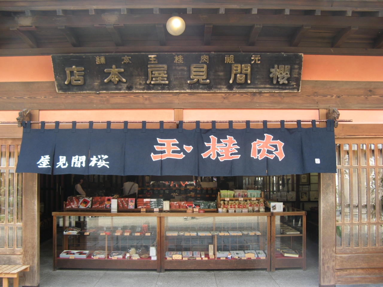 「桜間見屋」は、郡上八幡の観光のシンボルの一つ、“宗祇水”への入口にあります。堂々とした店構えと看板に歴史を感じる創業明治20年と言う老舗のお菓子屋さんです。看板商品のニッキ飴(150g入袋 420円)はニッキ独特の辛みと砂糖の甘さに何故か懐かし味がします。他にも、最中や羊羹、煎餅などのお菓子も充実しており、お土産に良いと思います。