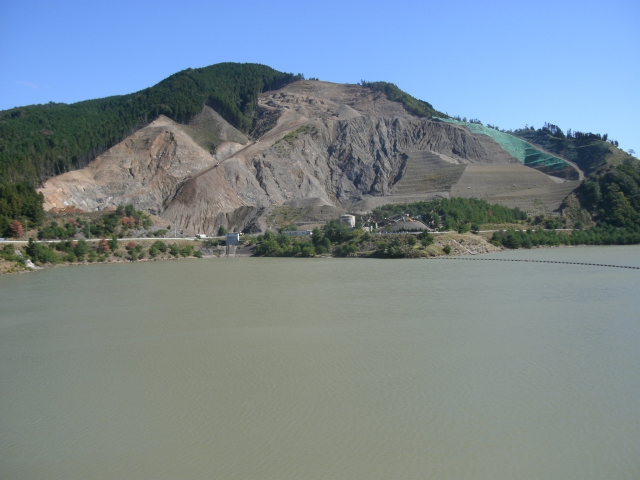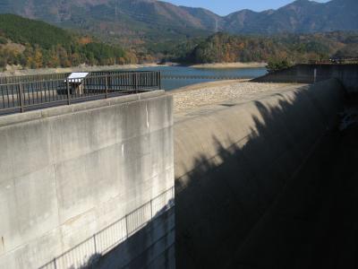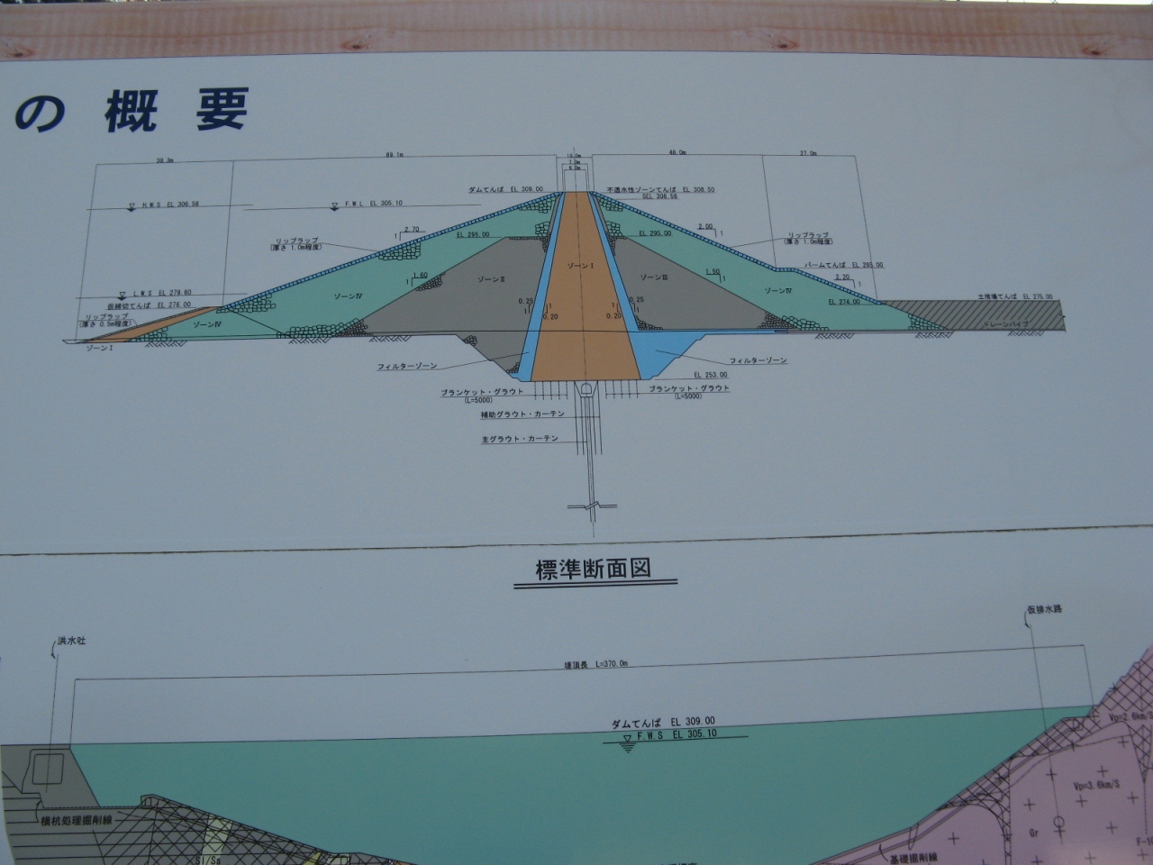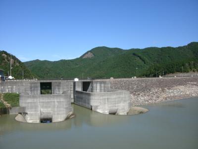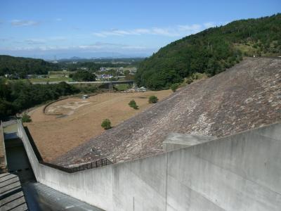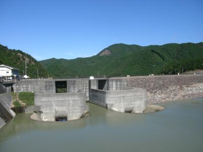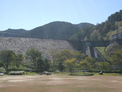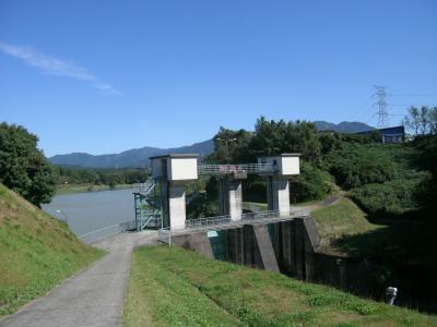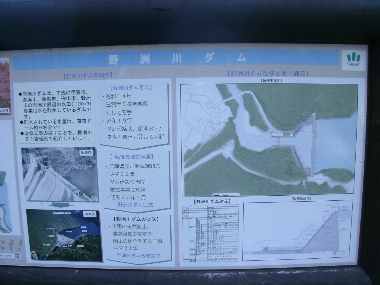 「日野川ダム」は、一級河川・淀川水系日野川の上流に設けられた、治水と灌漑用を目的としたグラベル式ダムです。ダム本体は全く目立たない状態で、天端は自動車での通行が可能で、ダムサイト周辺は散策道やダム公園、運動公園等が整備されており、日野城址(中野城址)があります。また、ダム湖ではへら鮒釣りがさかんです。ダム管理所を訪ねて、ダムカードを頂きました。管理所前にはトイレや休憩舎も整備されています。