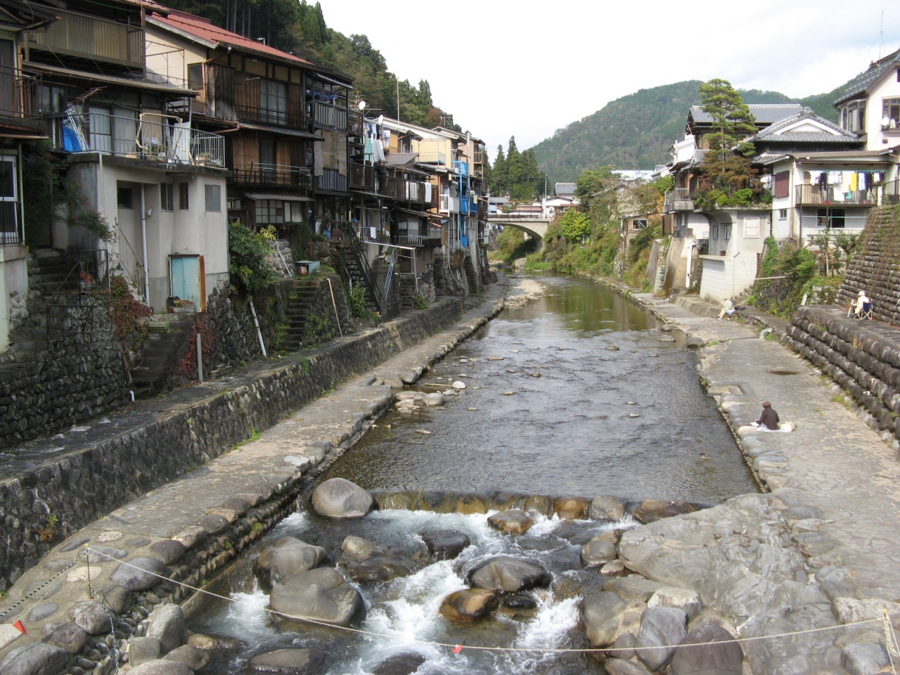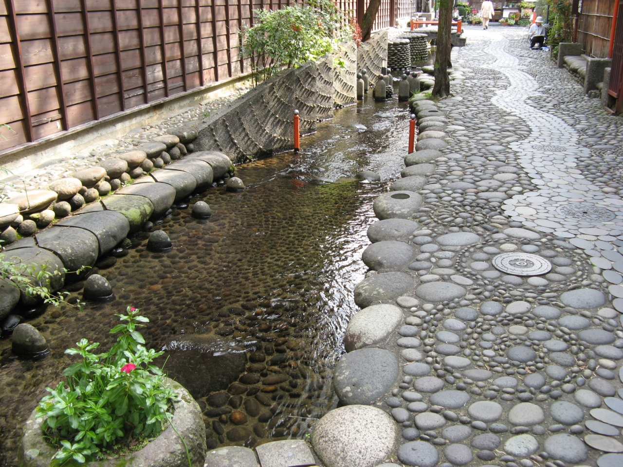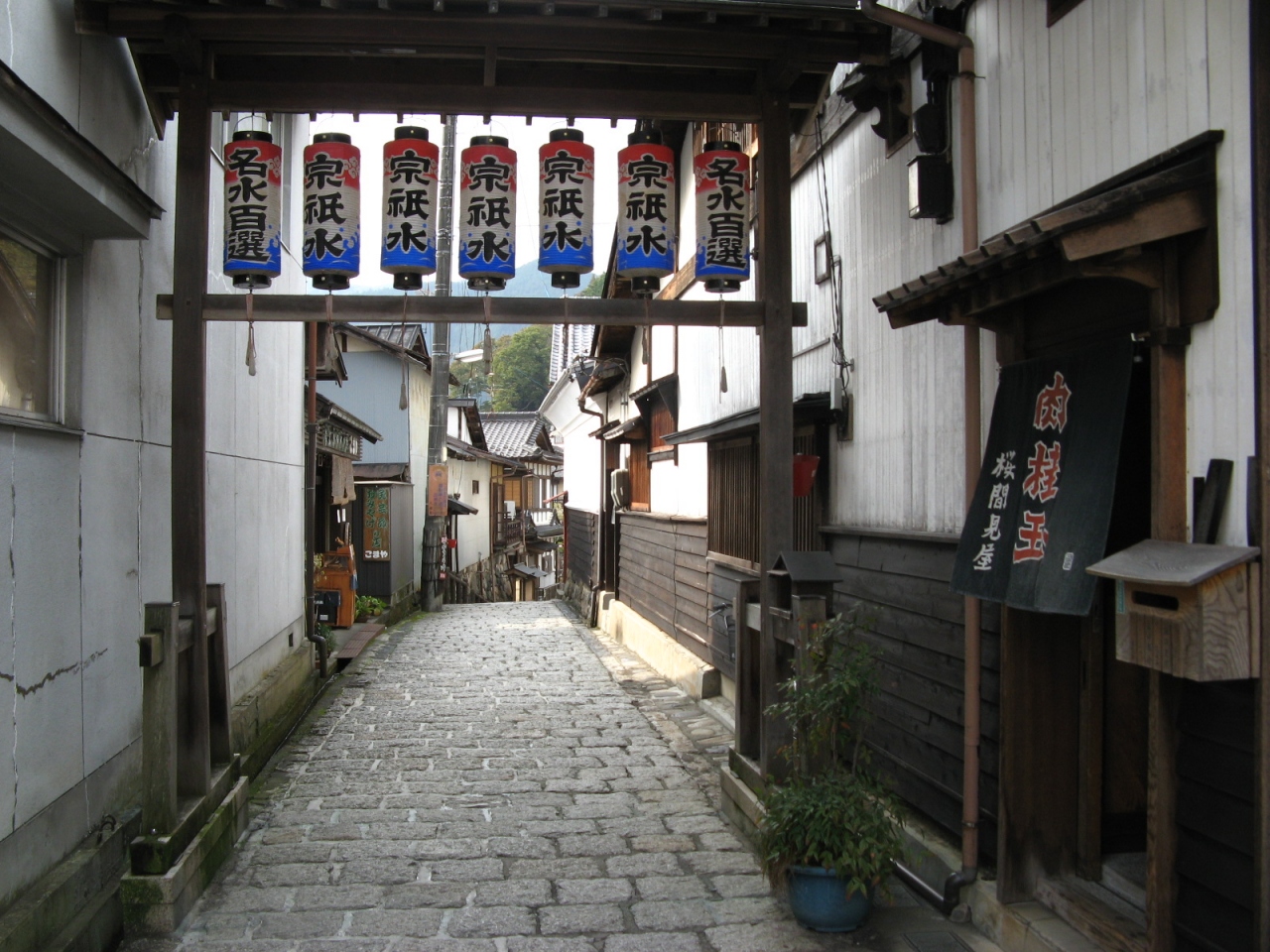 郡上八幡の町を歩いていると、町家の前を綺麗な水路が流れていたり、水飲み場があったり“水に恵まれた町”と言うことが判ります。「宗祗水」は、そんな“水”について象徴する場所の一つです。町家の通りから、細い石畳の路地を下りていくと小さな祠があって、その下から綺麗な水が流れています。水路は、地域の住民が利用する“水舟”という、一段目は飲料水、二段目は食材の洗い、三段目は食器洗いと洗濯に利用する三段になっていますが、今は、住民は使わず、観光スポットになっているようです。郡上八幡らしい、いい雰囲気のところでした。