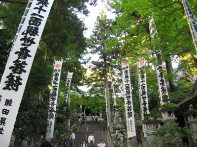 西国三十三所観音霊場の第三十三番札所で結願・満願のお寺です。西国三十三所巡礼の旅で参拝しました。参道手前の駐車場から1km足らずの仁王門までの参道の両側に土産物屋や飲食店、旅館が並んでいます。仁王門から本堂まではゆるやかな登りの石畳の参道となり、地蔵堂や羅漢堂、英霊堂、三十三所観音堂、明王院などがあり、参道突き当りの石段を上ると本堂や鐘楼堂、阿弥陀堂など多くの建物が並んでいます。厳かな雰囲気漂う広い境内には沢山の巡礼者がお参りしていました。