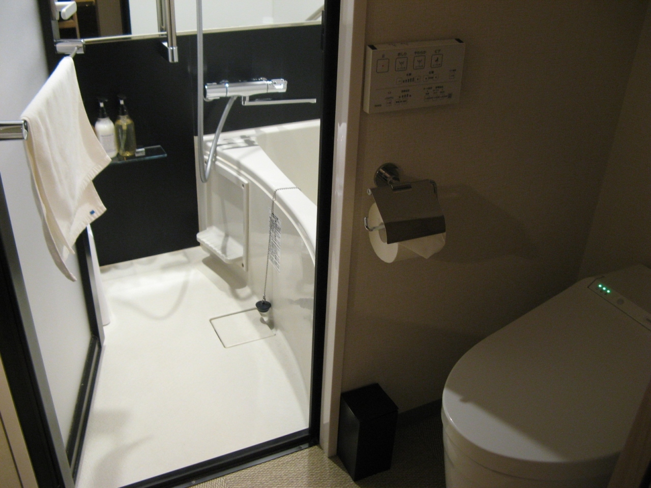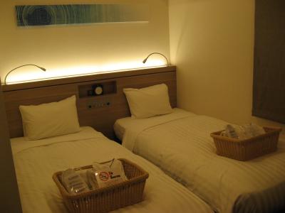 御堂筋線本町駅から歩いて5分ほど、近くにはコンビニや飲食店もあり便利な立地です。フロントにアメニティバーがあり、歯ブラシやカミソリ、シェービングクリーム、綿棒、ヘアブラシなどは必要な方だけ持っていくシステムになっています。宿泊したツインの部屋にはUCCのコーヒーマシンがあって、コーヒーとお茶を無料で頂けるほか、無料のミネラルウォーター、使い捨てスリッパなどが用意されておりビジネスホテルとしては色々揃っている印象を受けました。トイレと洗面所、脱衣所が一畳ほどのスペースにあり、その扉の向こうがお風呂になっているスタイルで、狭かったが、トイレ、バスは別々になっていました。部屋は狭かったが清潔に管理されていて、立地や価格から見たら納得できるレベルで寝るだけなら十分でした。