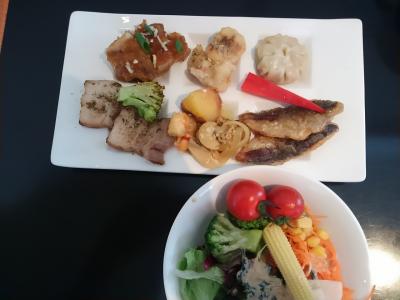 ドーム型の独立型の建物は2ベッドに長ソファー付きの部屋で広々としていてバス、トイレ、冷暖房、冷蔵庫や金庫、TV、ポット、ドライヤー、Wi-fiなどが完備、アメニティも十分で普通のホテルと遜色ありません。むしろ、独立しているので隣室に気を遣う必要もないしその点は子供たちなど家族連れにはとても良いと思いました。フロントやレストラン、温泉施設に行くにはいちいち外を歩くか、巡回バスを利用するしかないのですが、雨の日はちよっと不便かなあと思いました。食事は近くのとれとれ亭でのバイキングでした。海鮮中心でステーキなど肉類もあり、90分の制限時間がありますがなかなかコスパは良いと思いました。