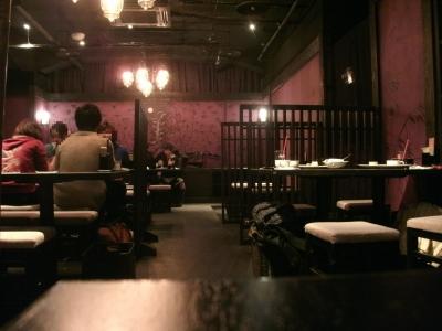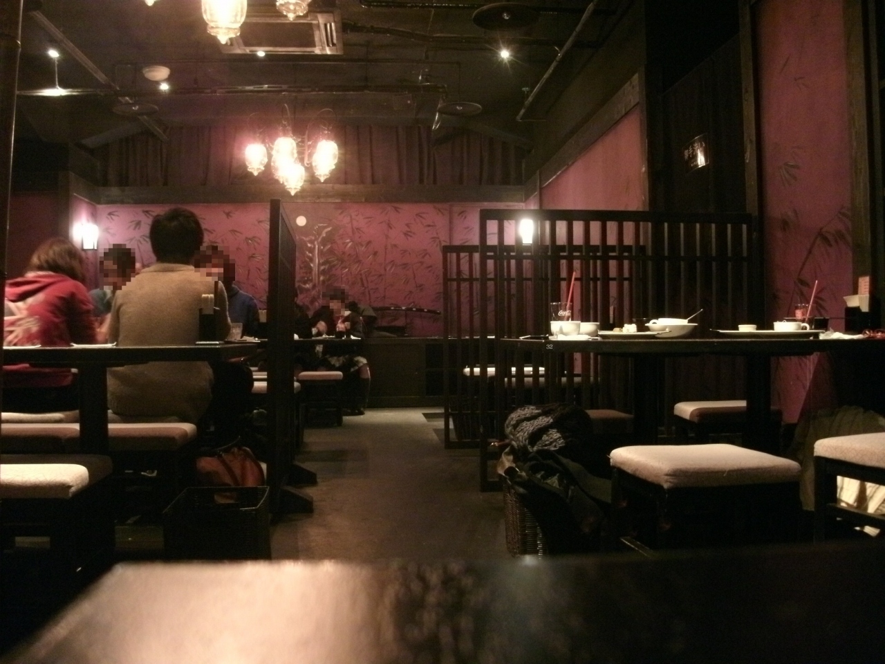 薄暗い店内に入ると、忍者のコスチームを着た女性スタッフから、お客さんは“殿”、“姫”と呼ばれて食事のマナー・システムなどについて簡単な説明を受けます。“殿”、“姫”と呼ぶ割には、『忍者タルモノハ、己ノ痕跡ヲ残スベカラズ』と、散らかしたまま帰らない様にという意味の注意があり、ちよっと笑えた。説明時間は1分間ほどですが、ちよっと恥ずかしい。