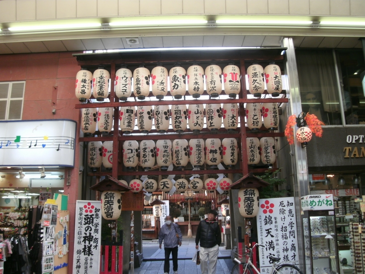 「錦天満宮」は、錦市場の東の端、新京極と交差する場所に鎮座されています。