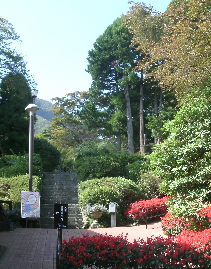 箱根登山鉄道の強羅駅から急な坂を歩いて5分ぐらい、大正3年に開園した歴史ある公園です。正門から入ると斜面を上るように傾斜のある広い園内には沢山の木や花があります。中央の噴水広場からは遠くの山々まで見渡せとてもいい感じです。一番奥にあるローズガーデンは種類も多くて、これまでも見たことのないバラがあったりして大変見所がありました。園内にはブーゲンビレア館や熱帯植物館、ハーブ館など1年中、花が楽しめる温室や、カフェ、茶室などもあります。入館料は500円ですが、箱根フリーパスを使ったので無料では入れました。