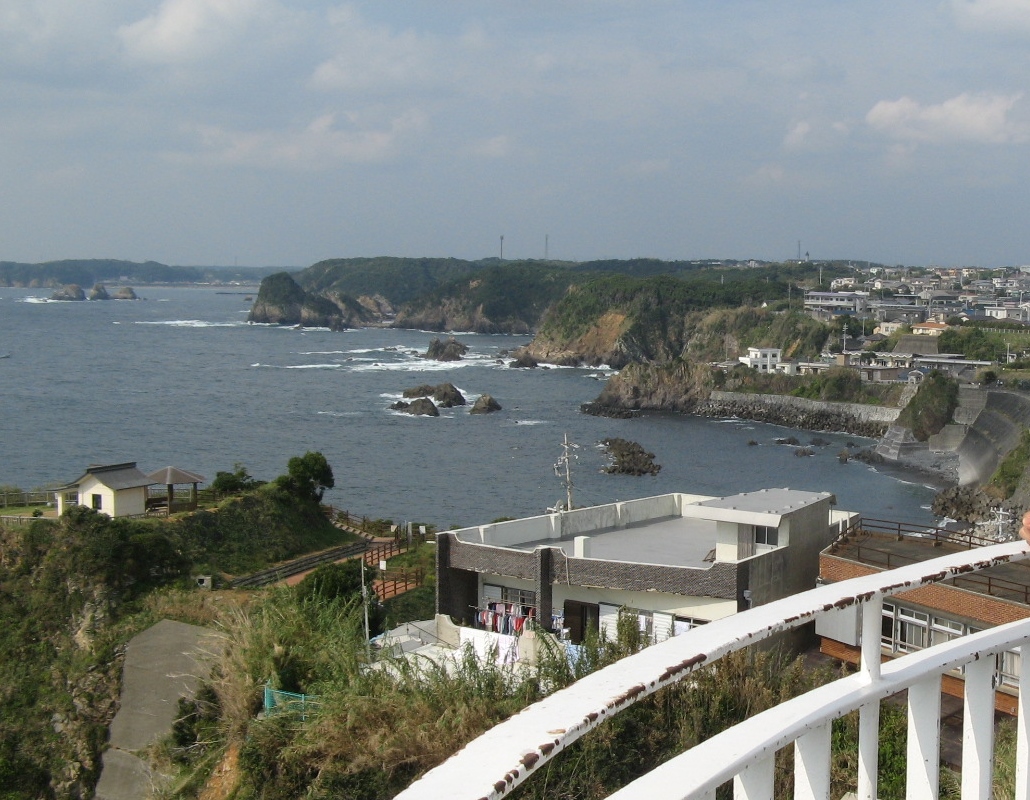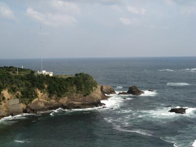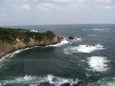 「大王崎灯台」は、志摩半島南東端の、太平洋に突出する大王崎の先端に立つています。沖には立島、大王島などの岩礁があり、断崖にくだける黒潮のしぶきの壮観な光景は志摩第一といわれています。灯台までは駐車場から坂道を少し歩きますが、道沿いにはパールや干物、わかめなどのお土産屋店が並びなかなか風情があります。灯台の螺旋階段を登り、最上階の見張り台からは360度の大パノラマが楽しめます。灯台への入場料は大人200円です。