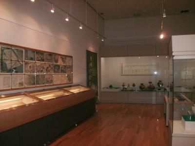 館内はそれほど広くなく、入り口でスリッパに履き替えて入ります。吉見町の遺跡や古墳で発掘された石器や土器、土偶、中世の壷など古墳時代から江戸時代までの出土品などを展示しています。