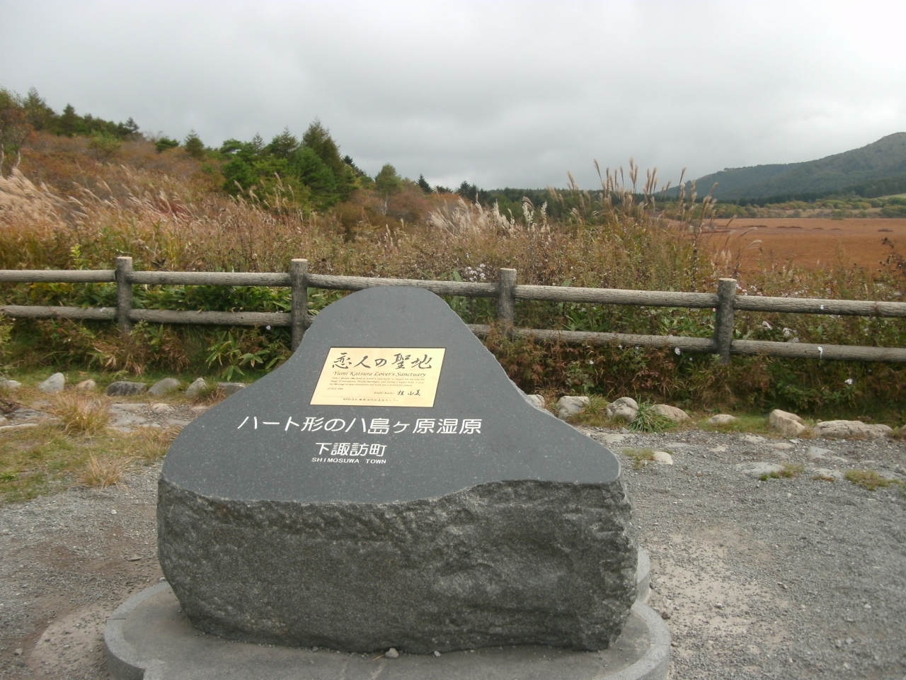 JR中央本線下諏訪駅から車で30分あまり、県道194号線(ビーナスライン)の傍に入り口があります。標高1,640m、霧ヶ峰の湿原のなかでは最大の高層湿原で、1万2000年もの時を刻み形成されたものだそうです。駐車場からは歩いてすぐ、湿原が見えてきます。八島ヶ池など池も点在し、周囲には所要時間1時間30分ほどのハイキングコースがあります。10月初めに訪れたのですが、花はほとんど見ることが出来ず、草紅葉の状態でした。夏には400種類以上の花が咲くそうで、夏に来てみたいと思いました。