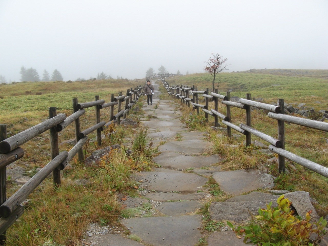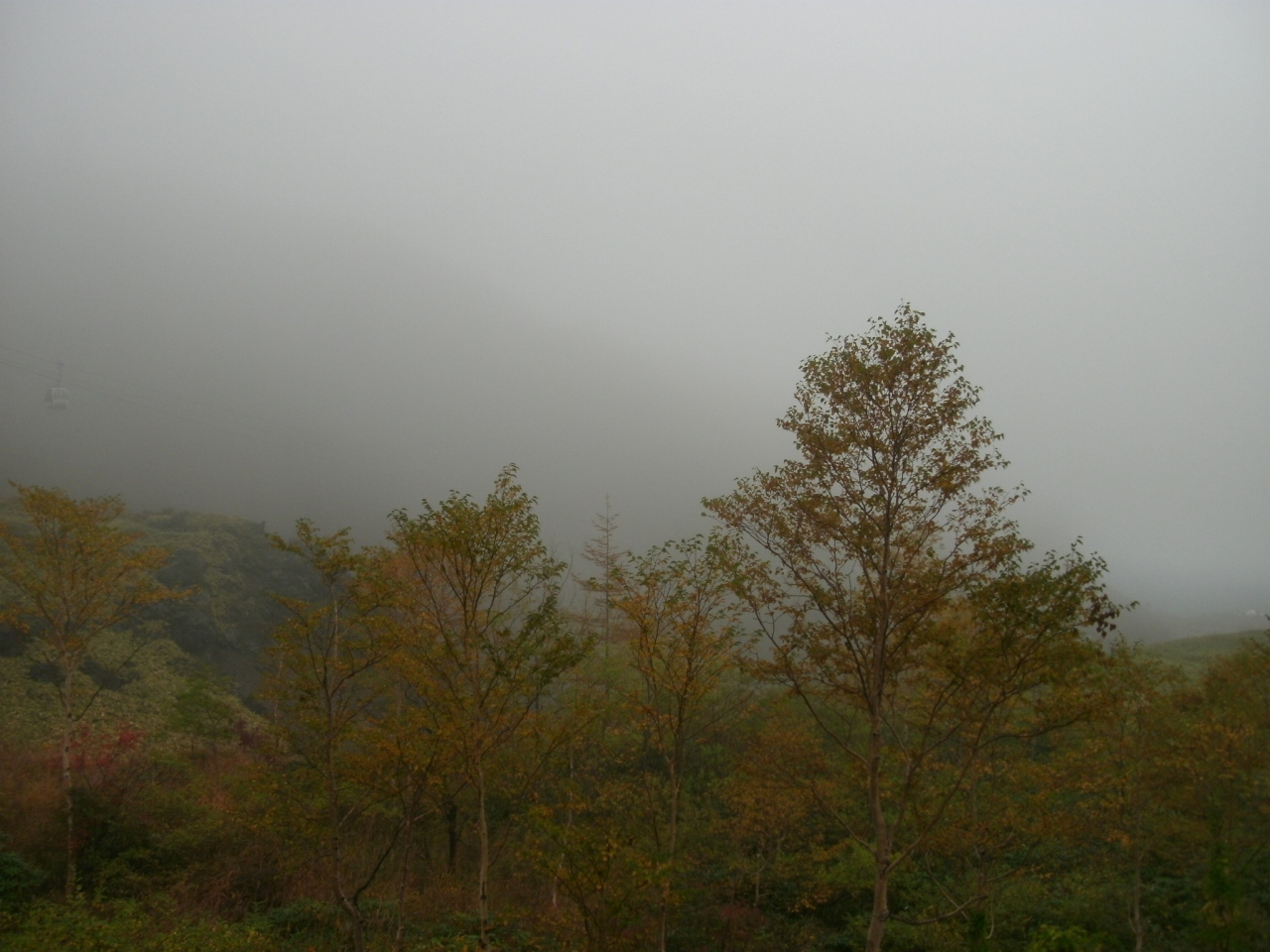 下諏訪から国道142号線(中山道)と県道194号線(ビーナスライン)を走って30分あまり、「車山高原」に行って来ました。スキーで来たことはあったのですが、10月に訪れたのは初めてでした。ビーナスラインの駐車場からは、夏でもリフトが動いているので、簡単に山頂まで登れますが、生憎の天気でリフトに乗るのはあきらめました。駐車場の傍には、車山ビジターセンターがあって、車山を中心とした地域の最新情報や、車山や霧ヶ峰の自然、文化、歴史などをわかりやすく紹介したパネルの展示などがあり、観光情報を得ることができます。