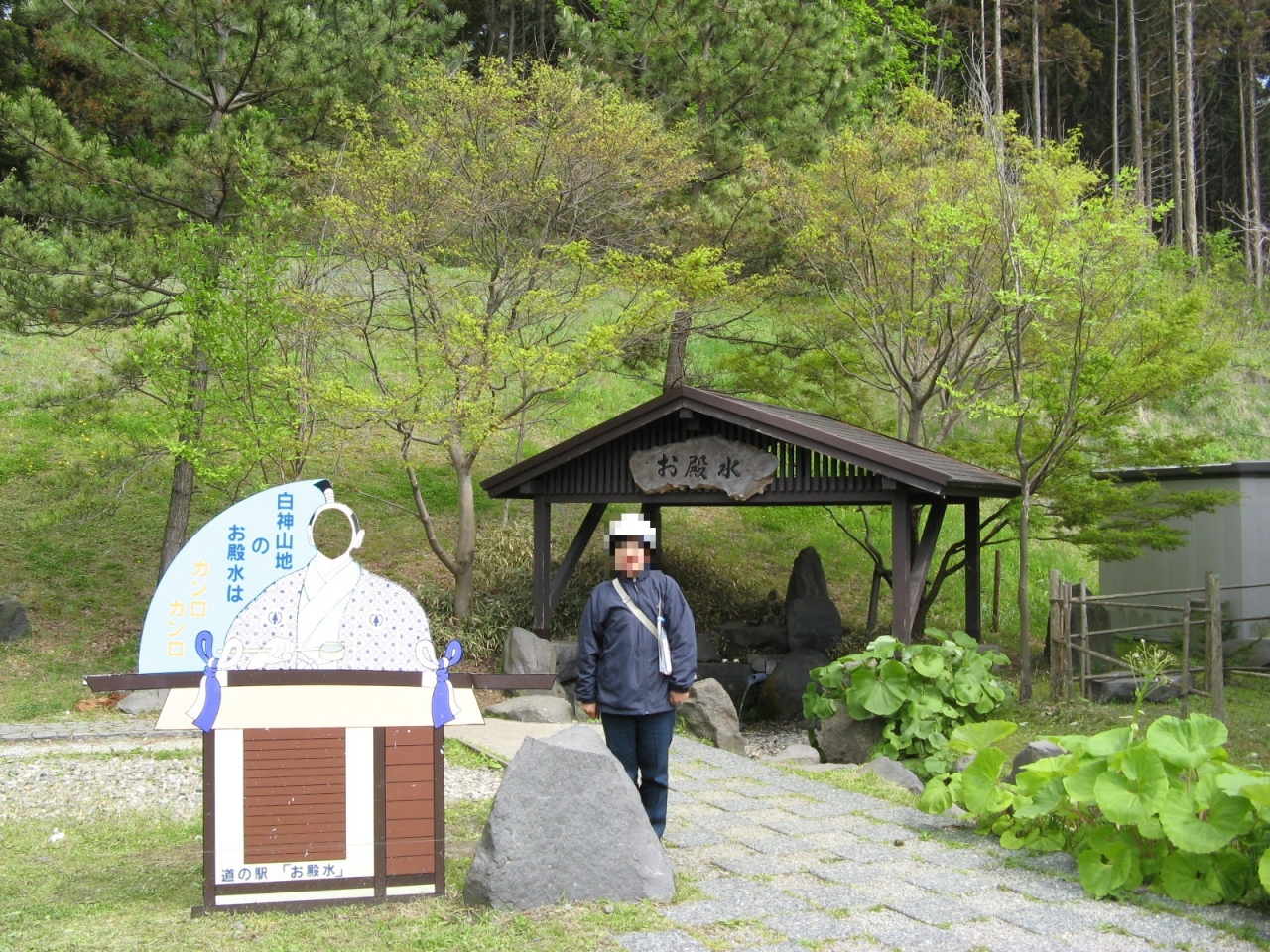 「お殿水」は、国道101号線を通ると、秋田県と青森県の県境の秋田県側1kmほどのところにある“道の駅はちもり”にある名水です。