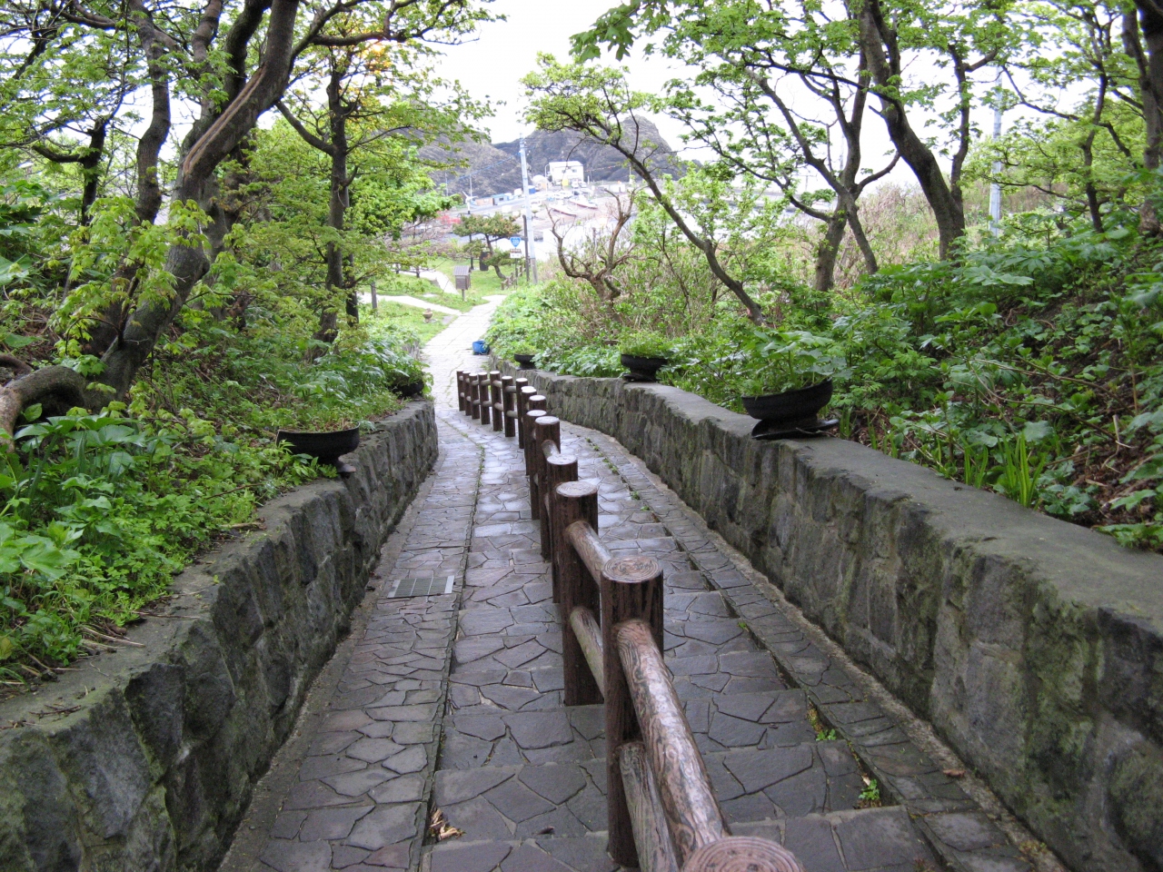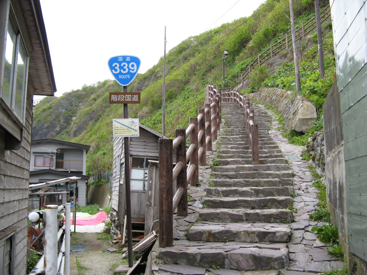 かなり高低差があり、真っ直ぐではなく途中で折れ曲がっています。階段の下の方は、民家の間を縫う様に通っています。律儀に“国道339号線”の標識をあげていますが、もちろん車は通ることが出来ません。