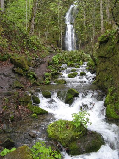 東北旅行ときに、鯵ヶ沢市街から県道3号線と県道30号線を走って、「岩木山」の麓を一周しました。日本百名山に指定されている岩木山は別名“津軽富士”とも呼ばれる1625mの独立峰で、5月行ったのですが、少し雪を残した岩木山は道路のどこから見ても絵になる美しい姿で、津軽の人々から「お岩木様」と呼ばれ信仰の対象の山となっていることがわかる様な気がしました。